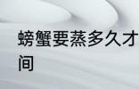 1、螃蟹重量三两以下水开后蒸15分钟;螃蟹重量三两到四两间蒸17分钟;2、螃蟹重量四两以上的蒸二十分钟,一般是蟹体重每增加一两,时间增 ....