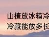 1、山楂放冰箱冷藏能半个月到几个月不等。 2、如果是将山楂置于冷藏室存放的话,一般可以保存15天到一个月不等;而若是将其置于冰箱冷冻 ....