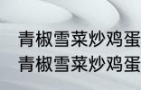 1、原料:青椒、鸡蛋、雪菜、料酒、盐。2、青椒、鸡蛋、雪菜(已清洗切碎)3、将青椒切开去蒂去籽、清洗一下。放在案板上切碎,待用。4、 ....